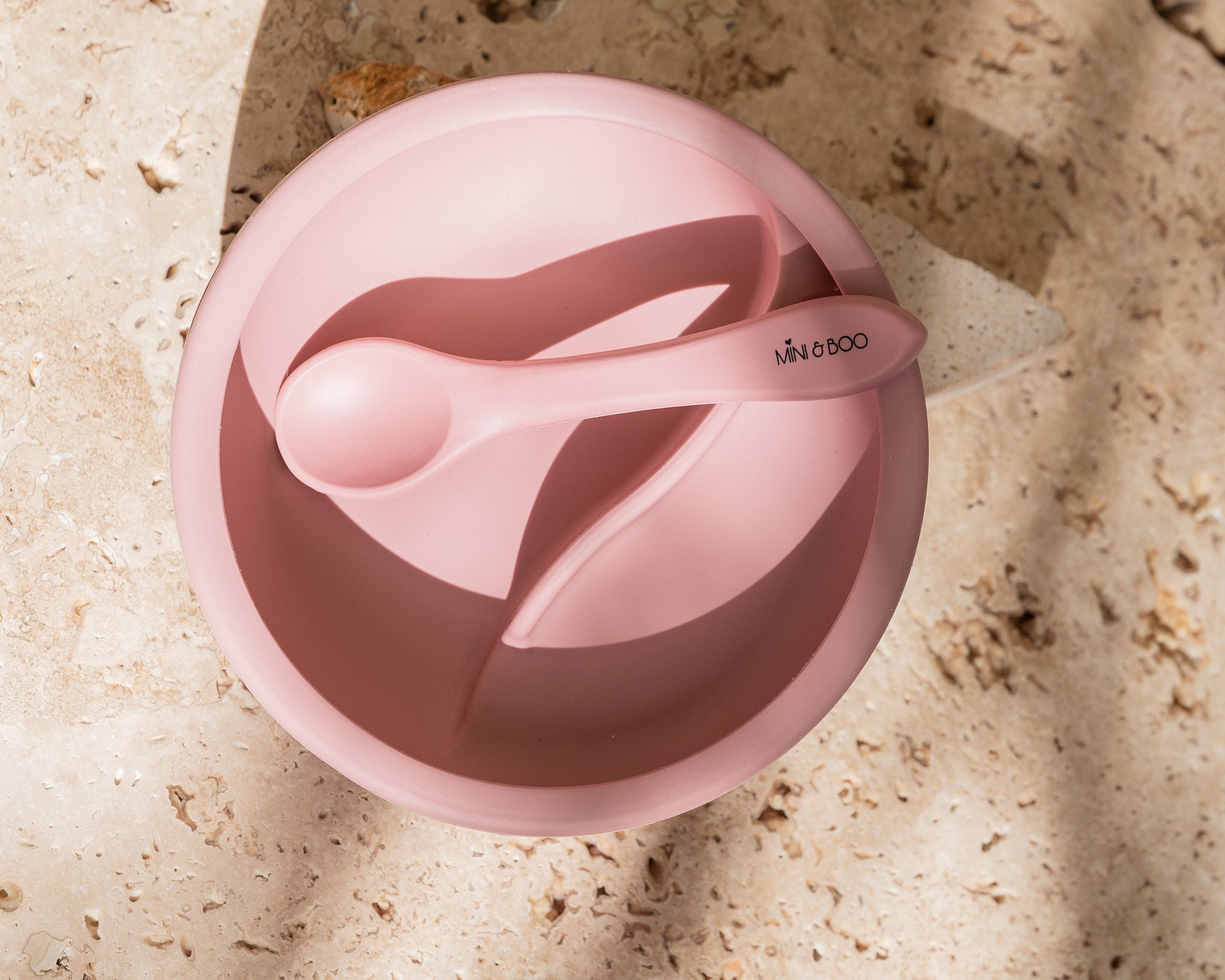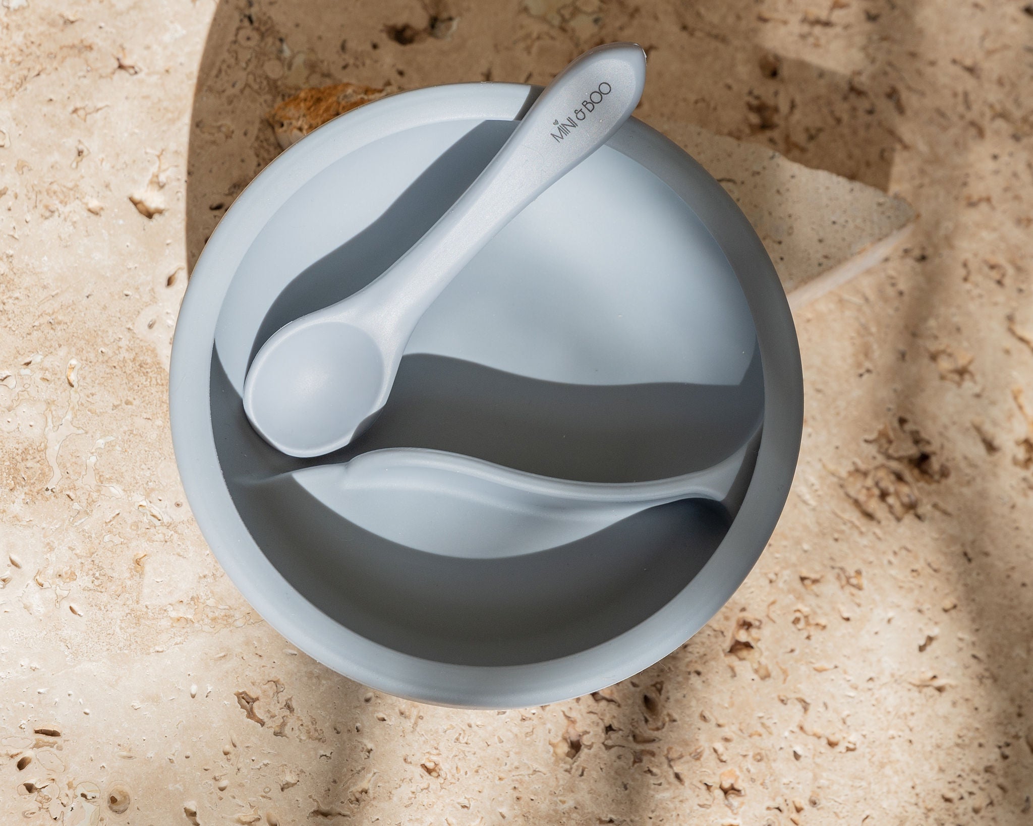 - The set includes, 1 silicone section bowl and 1 silicone spoon.