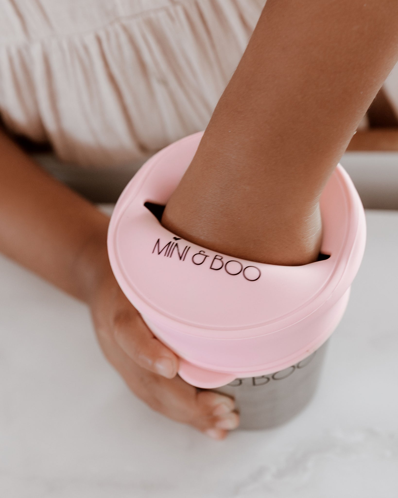 Our snack lids are flexible and soft for your child's hand to easily grab their snack from inside.